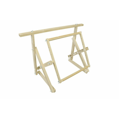 Руфия с клипсами - универсальный станок, на нем можно вышивать сидя за столом, или на диване. Благодаря своей конструкции он получился надежным и устойчивым со множеством плавным регулировок. На этот станок можно установить рамы разного размера, от 40 до 55 см.