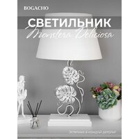 Купить Настольный светильник Bogacho Monstera Deliciosa на высокой ножке с абажуром для украшения интерьера спальни и гостиной с доставкой по всей России.