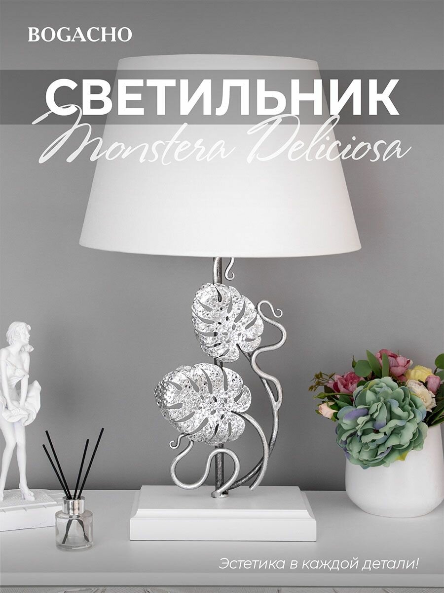 Настольный светильник Bogacho Monstera Deliciosa на высокой ножке с абажуром для украшения интерьера спальни и гостиной: сравнение цен, характеристики, фото, актуальное наличие и цены.