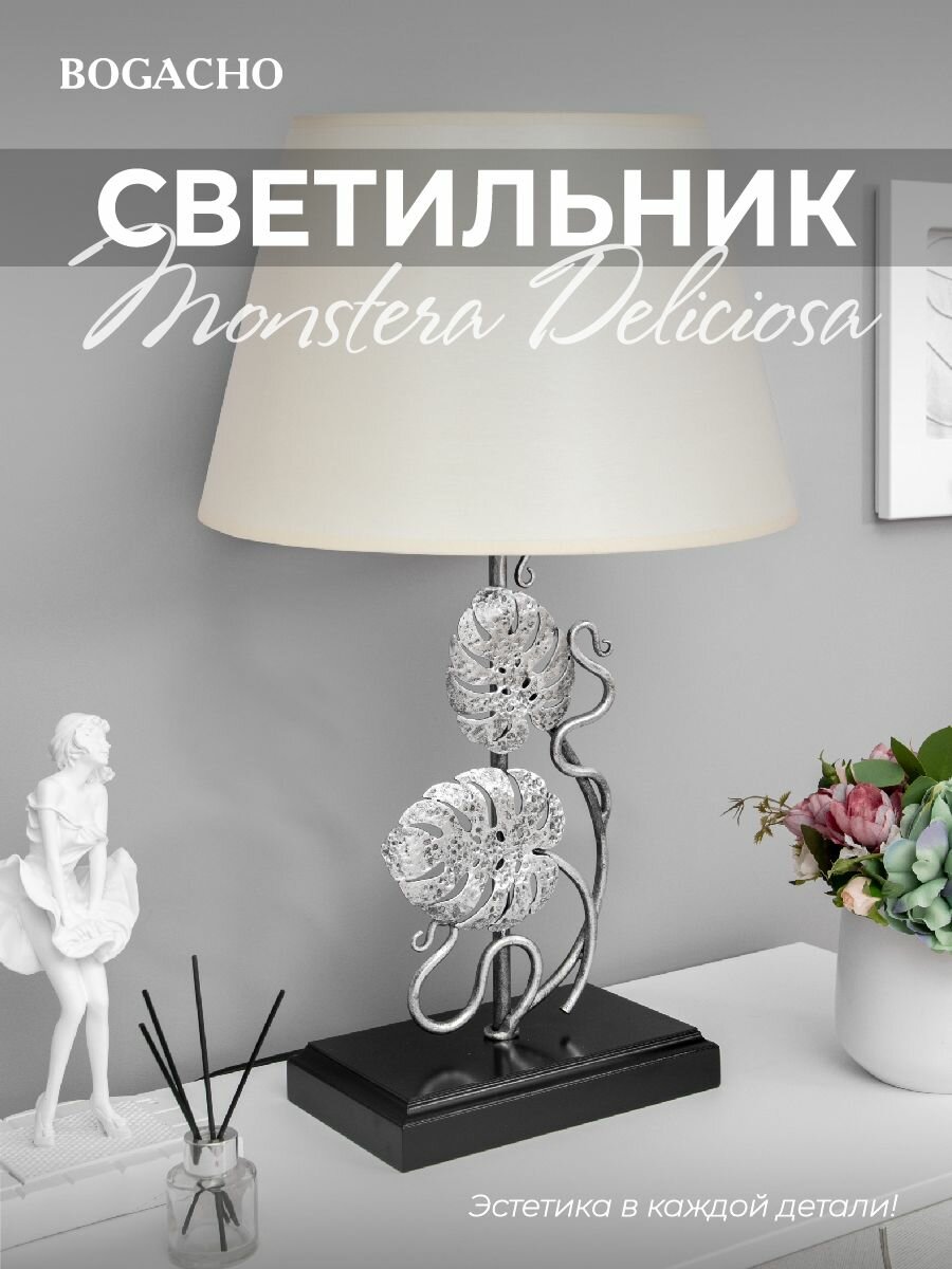 Настольный светильник Bogacho Monstera Deliciosa на высокой ножке с абажуром для украшения интерьера спальни и гостиной