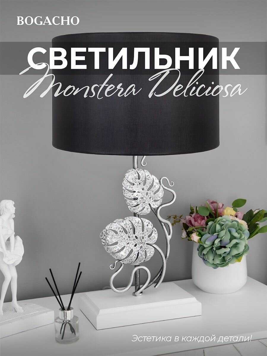 Настольный светильник Bogacho Monstera Deliciosa на высокой ножке с абажуром для украшения интерьера спальни и гостиной: сравнение цен, характеристики, фото, актуальное наличие и цены.