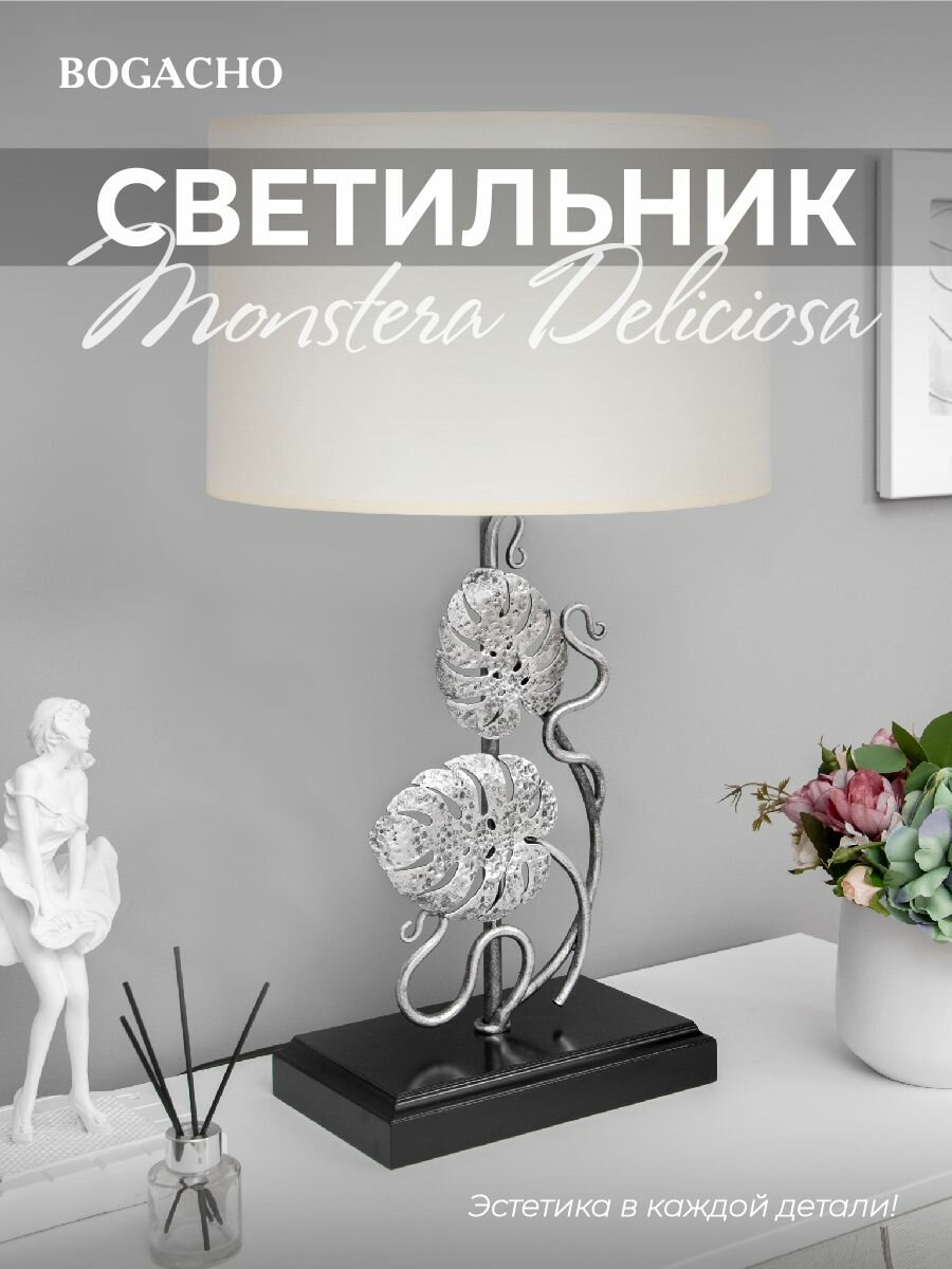 Настольный светильник Bogacho Monstera Deliciosa на высокой ножке с абажуром для украшения интерьера спальни и гостиной