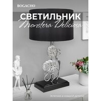 Купить Настольный светильник Bogacho Monstera Deliciosa на высокой ножке с абажуром для украшения интерьера спальни и гостиной с доставкой по всей России.