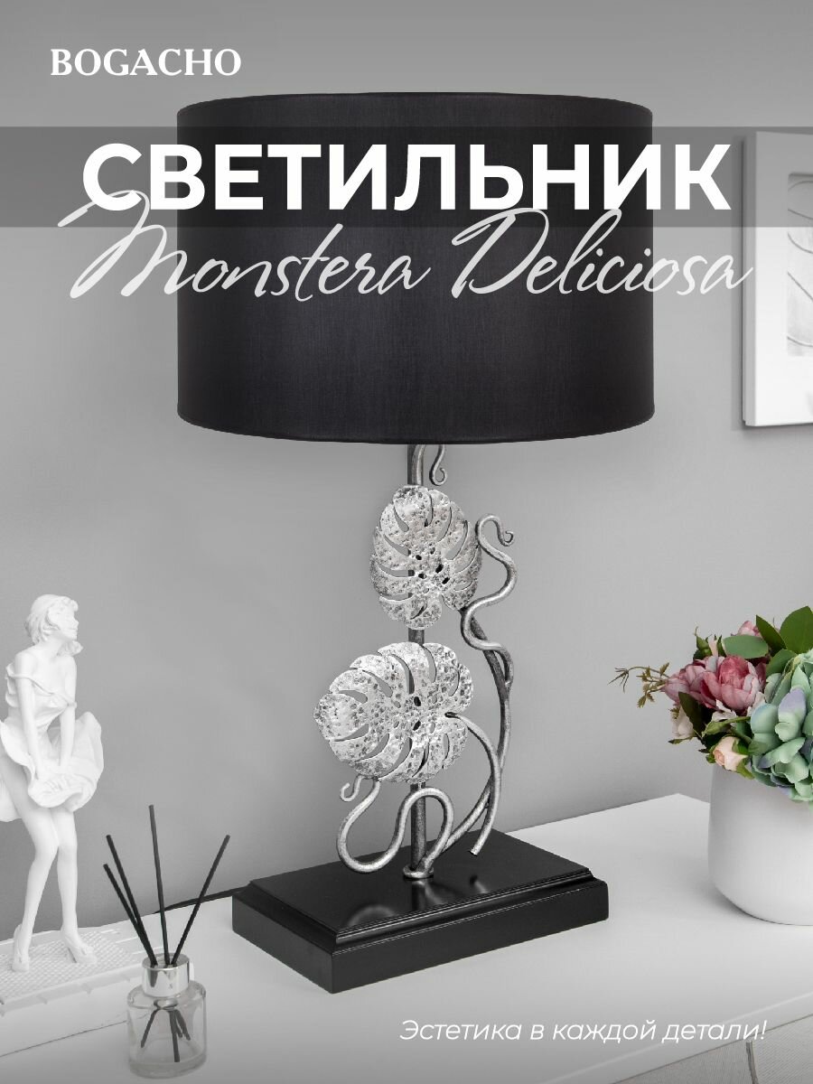 Настольный светильник Bogacho Monstera Deliciosa на высокой ножке с абажуром для украшения интерьера спальни и гостиной