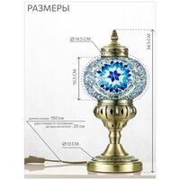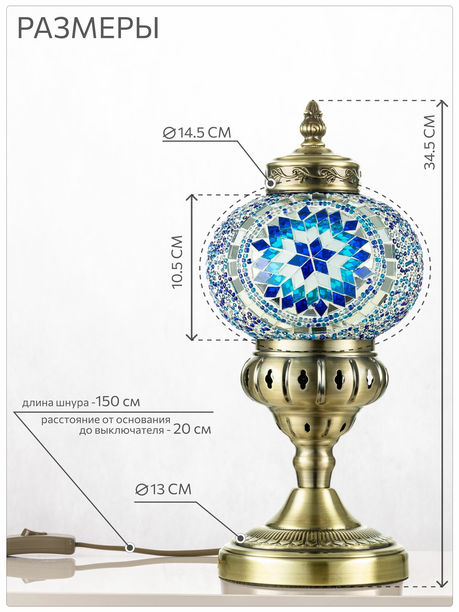 | Дополнительная информация | конструкция обеспечивает устойчивость благодаря утяжелённому основанию и продуманному распределению веса, металлический корпус цвета благородной бронзы украшен ручной чеканкой и защищён многослойным антикоррозийным покрытием, сферический плафон декорирован авторской стеклянной мозаикой в сине-голубых оттенках, создающей эффект мягкого рассеянного свечения, элементы мозаики закреплены по технологии витражного монтажа с использованием термостойких клеёв, устойчивых к температурным деформациям, внутренняя проводка оснащена термозащитными клеммами и двойной изоляцией для предотвращения перегрева контактов, сетевой провод длиной 1,5 м имеет армированную гибкую оплётку, устойчивую к перегибам и износу, выключатель на проводе (расположен в 20 см от основания) обеспечивает удобное управление освещением, плафон легко снимается для чистки и замены лампы, модель совместима с лампами накаливания, светодиодными и филаментными (цоколь Е27, макс. мощность 75 Вт), при использовании светодиодных ламп достигается повышенная яркость при сниженном энергопотреблении, степень защиты IP20 гарантирует безопасную эксплуатацию в сухих помещениях, световой поток 750 лм формирует комфортную освещённость на площади до 2,8 м², все крепёжные элементы выполнены из коррозионностойких сплавов с антифрикционным покрытием, конструкция разработана с учётом требований пожарной безопасности, изделие прошло многоступенчатый контроль качества, гарантийный срок составляет 24 месяца, вес конструкции (2,2 кг) обеспечивает стабильность на горизонтальной поверхности, стекло мозаики устойчиво к температурным перепадам и лёгким механическим воздействиям, стыки и соединения герметизированы для защиты от проникновения пыли, декоративные элементы защищены от выцветания под воздействием ультрафиолета, основание оснащено силиконовыми противоскользящими накладками для защиты поверхностей, упаковка включает формованные пенопластовые вставки для безопасной транспортировки, в комплекте — иллюстрированная инструкция по сборке и эксплуатации, дизайн адаптирован для восточных, эклектичных и винтажных интерьеров, направление света — рассеянное во все стороны, форма плафона — сфера, технология монтажа мозаики предусматривает демпферные прокладки для компенсации вибраций, цветовая гамма мозаики создаёт охлаждающий визуальный эффект, гармонично вписываясь в интерьеры с прохладной палитрой |