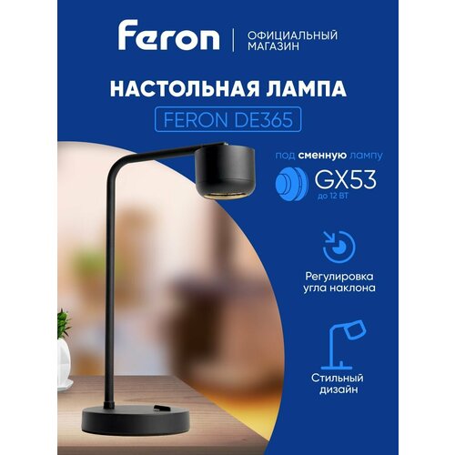 Настольный светильник Feron DE365 под лампу GX53 черный, 48404: сравнение цен, характеристики, фото, актуальное наличие и цены.