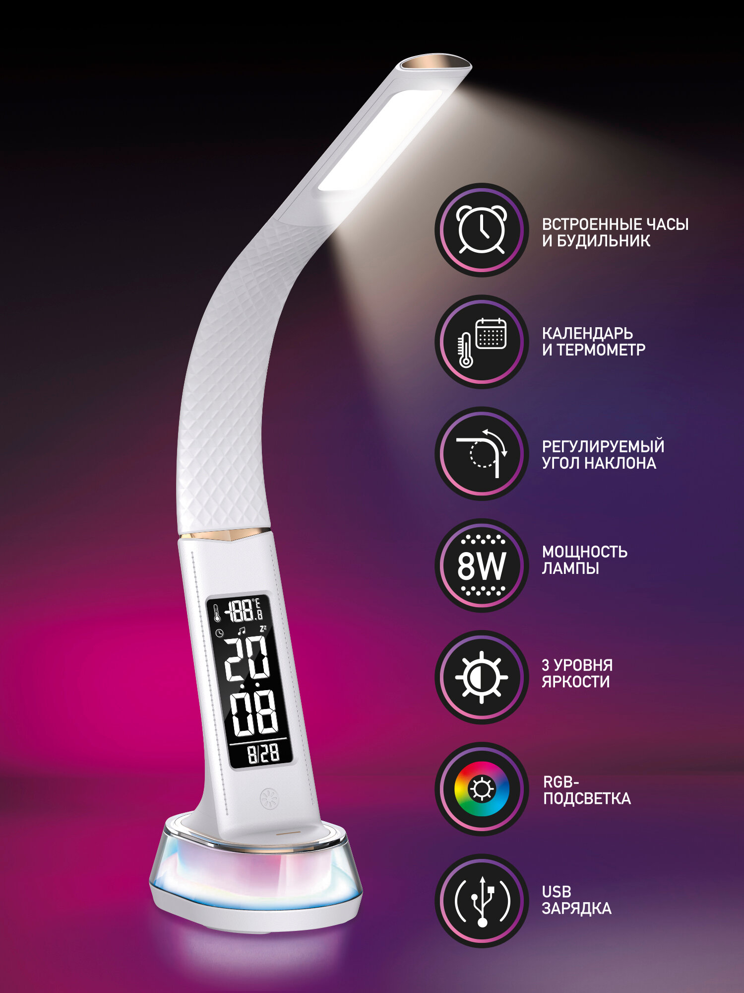 Настольный светильник LED-лампа Dendy 530-DL White Snake с RGB-подсветкой: сравнение цен, характеристики, фото, актуальное наличие и цены.