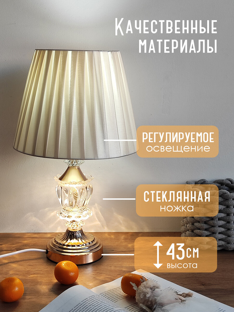 Настольный светильник на ножке с абажуром для интерьера спальни и гостиной, высота 43 см: сравнение цен, характеристики, фото, актуальное наличие и цены.