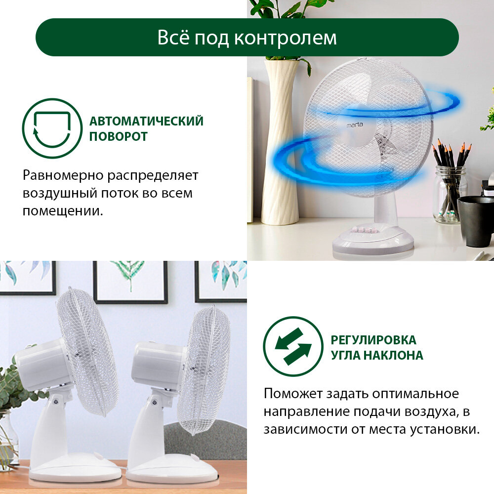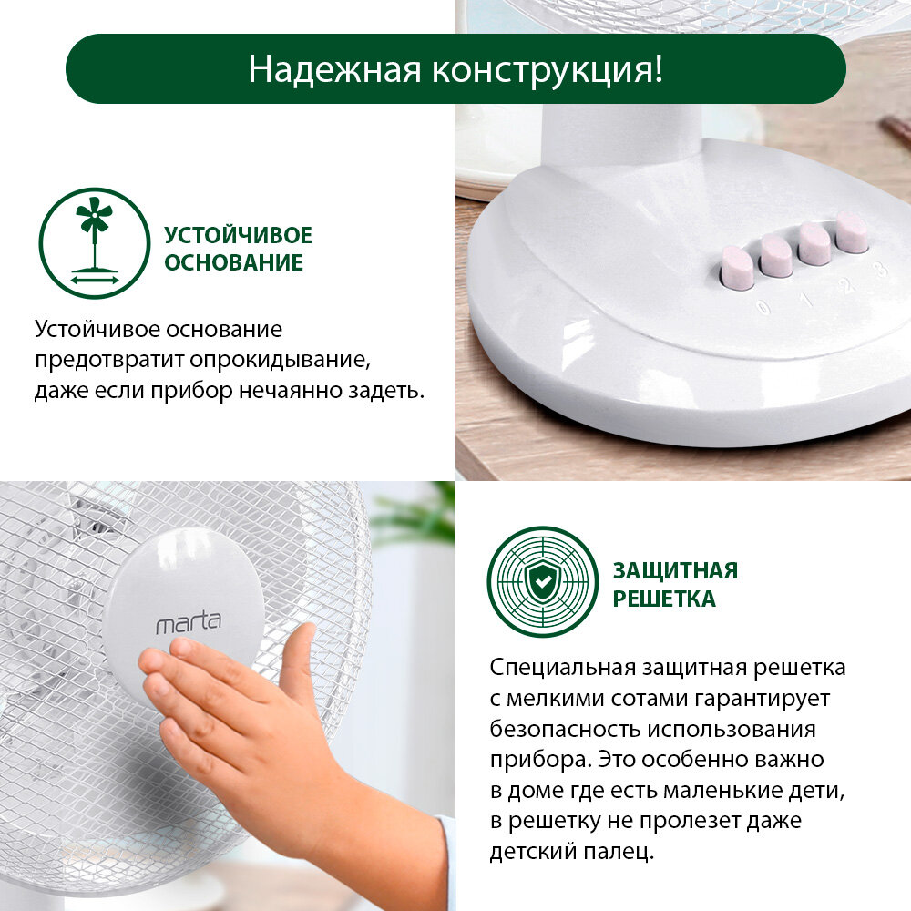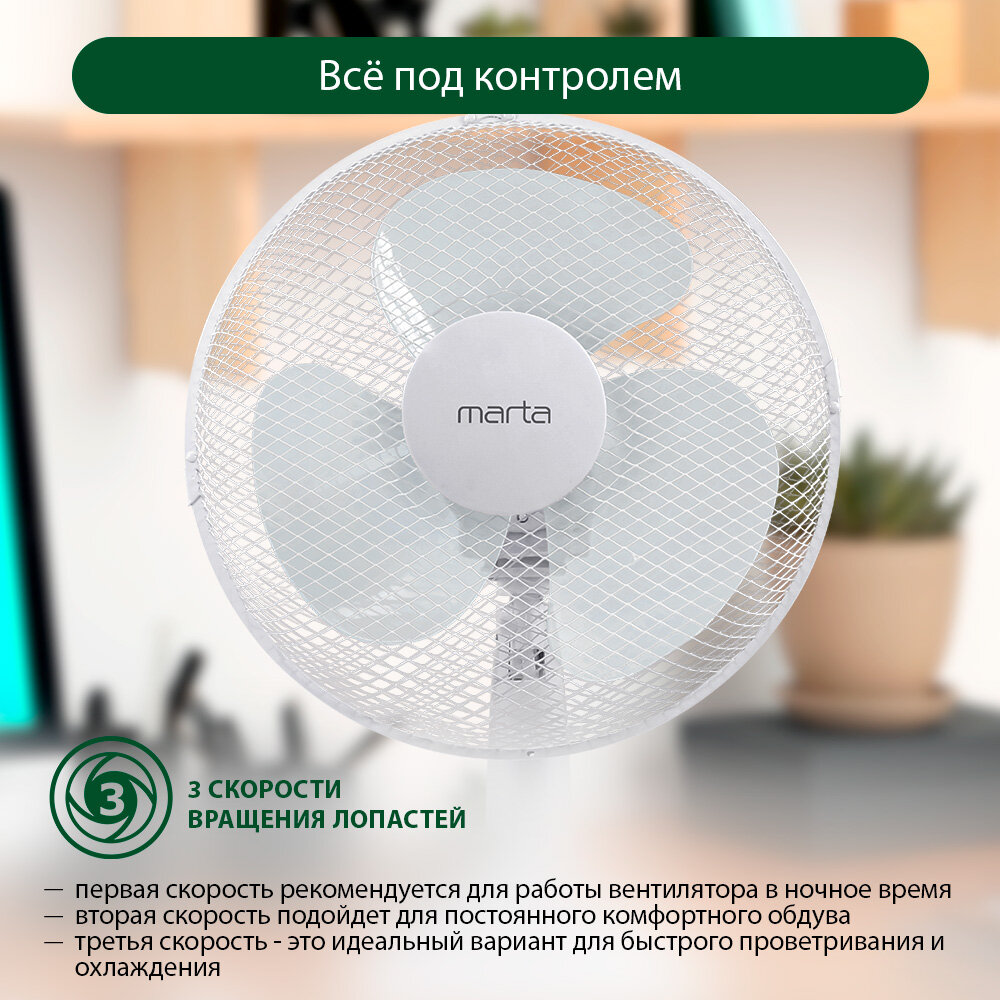MARTA MT-FN2535 - это настольный вентилятор, который станет незаменимым помощником в создании комфортного микроклимата в вашем доме или офисе.