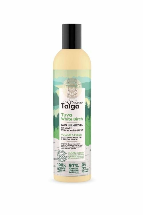 Био шампунь для супер свежести и объёма волос Volume & fresh Tuva White Birch.