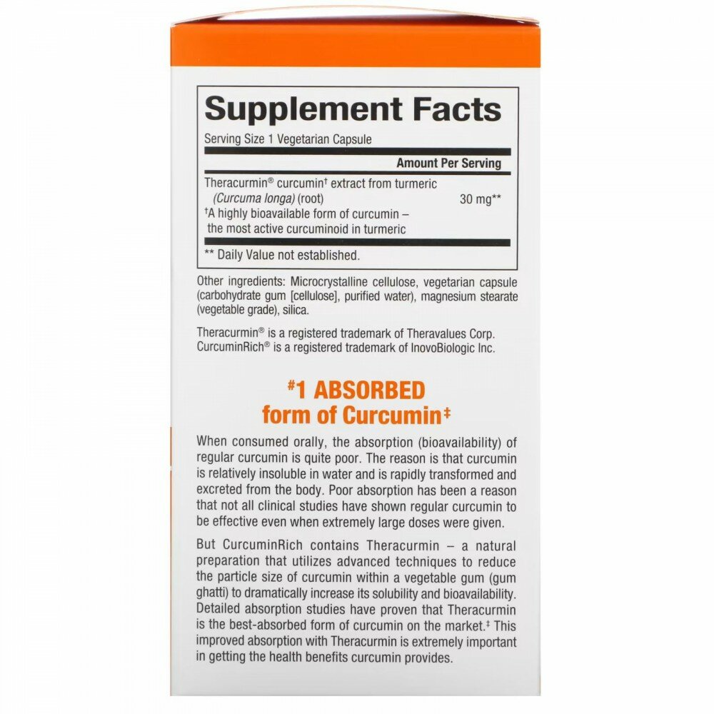 При производстве натурального препарата Theracurmin, который содержится в составе CurcuminRich, используются передовые методы уменьшения размера частиц куркумина в растительной камеди (камедь гхатти), что значительно увеличивает его растворимость и биодоступность. Подробные исследования усвояемости доказали, что Theracurmin является самой лучшей по усвояемости формой куркумина на рынке‡. Улучшенная усвояемость за счет Theracurmin чрезвычайно важна для получения организмом всех полезных свойств куркумина.