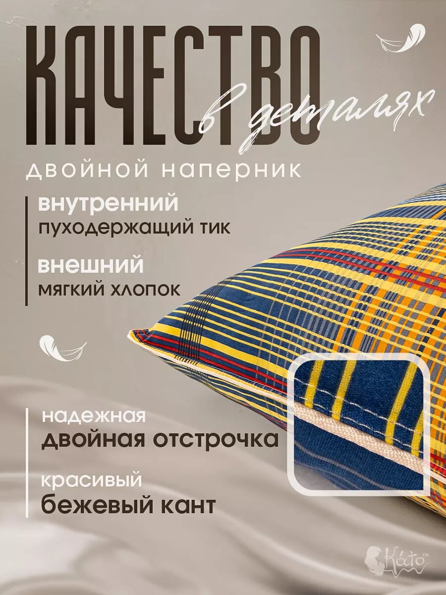 Подушка перьевая для сна "Деревенская" от бренда като представляет собой идеальное сочетание комфорта и стиля. Эта жесткая подушка размером 50х68 см изготовлена из 100% натурального гусиного пера, обеспечивая идеальную поддержку и уют во время сна. Уникальный двойной чехол с мягким хлопковым верхом и плотным поликоттонным внутренним слоем обеспечивает долговечность и удобство использования. Атласный бежевый кант и анатомическая форма добавляют элегантности и удобства, делая эту подушку незаменимым аксессуаром для спальни. Гипоаллергенные свойства наполнителя идеально подходят для людей с чувствительной кожей. Рисунок клетки на подушке добавляет дополнительный декоративный элемент, делая её универсальной для любого интерьера, может служить как подушки декоративные . Прекрасный подарок на 8 марта.