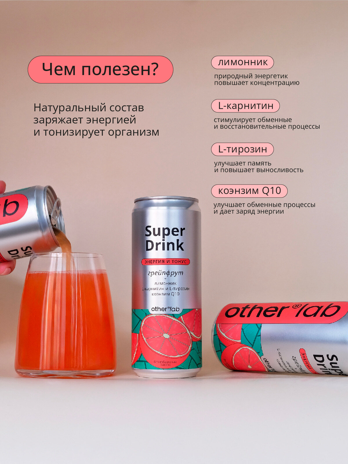 Натуральный лимонад Грейпфрут SUPER DRINK Other Lab, 6 шт х 330 мл без сахара: сравнение цен, характеристики, фото, актуальное наличие и цены.