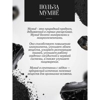 Мёд с алтайским мумиё - это отличное средство для оздоровления организма. Сочетание двух сильнейших биологически активных продуктов является мощным иммуностимулятором. Натуральный мед от пчеловодов содержит в себе множество аминокислот, витаминов и микроэлементов, которые легко усваиваются организмом. Состав мумиё не менее разнообразен. Он содержит различные бальзамические вещества, эфирные масла, полифенолы, гуминовые кислоты, витамины группы А, В, С, а также микроэлементы (железо, калий, магний, цинк, серебро и др.) Мёд с мумие укрепляет иммунитет, улучшает работу головного мозга, укрепляет нервную систему, выводит шлаки и токсины из организма, является сильным антибактериальным и противовирусным средством. Этот мед с добавками рекомендуют употреблять в ограниченном количестве как оздоровительное средство. Из-за высокого содержания активных веществ суточная норма потребления для взрослого человека составляет - 1 столовая ложка 2-3 раза в день. Детям старше 14 лет советуют употреблять половину нормы взрослого.