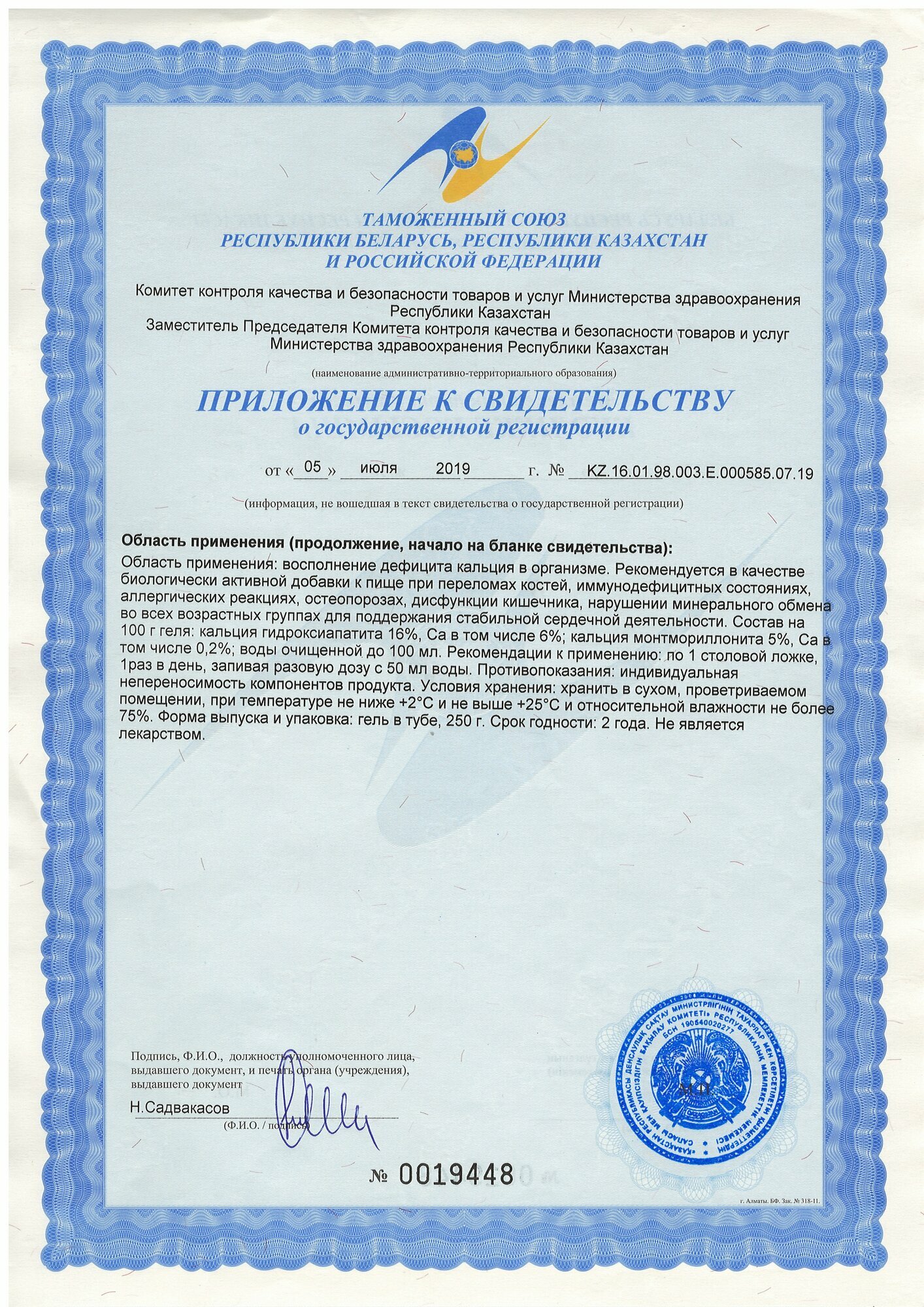 Рекомендуется в качестве биологически активной добавки к пище при переломах костей, иммунодефицитных состояниях, аллергических реакциях, остеопорозах, дисфункции кишечника, нарушении минерального обмена во всех возрастных группах для поддержания стабильной сердечной деятельности.