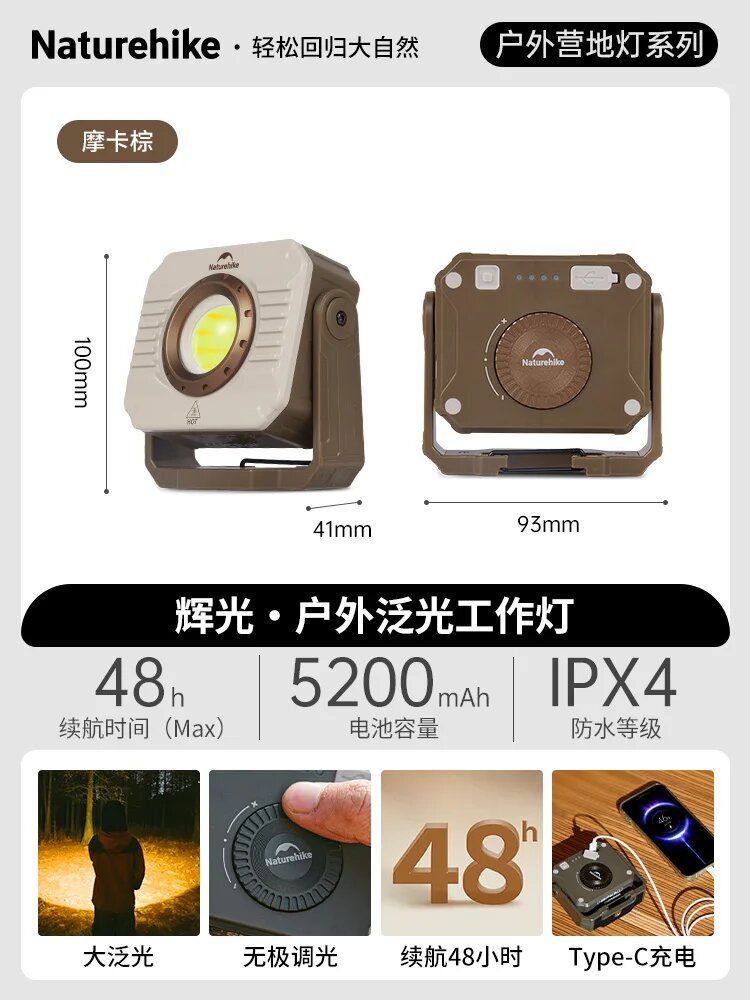 Naturehike 2024, новый уличный прожектор, рабочий свет, портативная палатка для кемпинга, освещение большой площади, сильный и супер яркий прожектор, Коричневый: сравнение цен, характеристики, фото, актуальное наличие и цены.