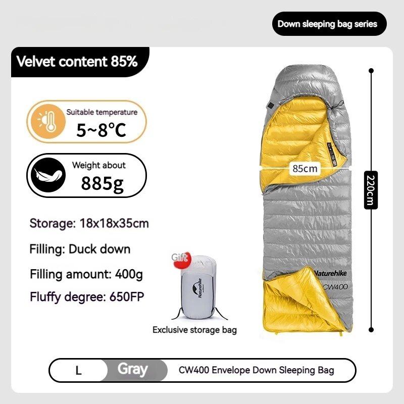 Купить Naturehike CW400 спальный мешок утиный пух 650FP черный/серый с доставкой по всей России.