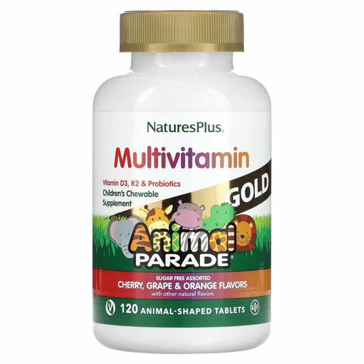 Купить Nature’s Plus, Animal Parade Gold Multivitamin, добавка для детей с мультивитаминами и минералами, 120 таблеток(ассорти) с доставкой по всей России.