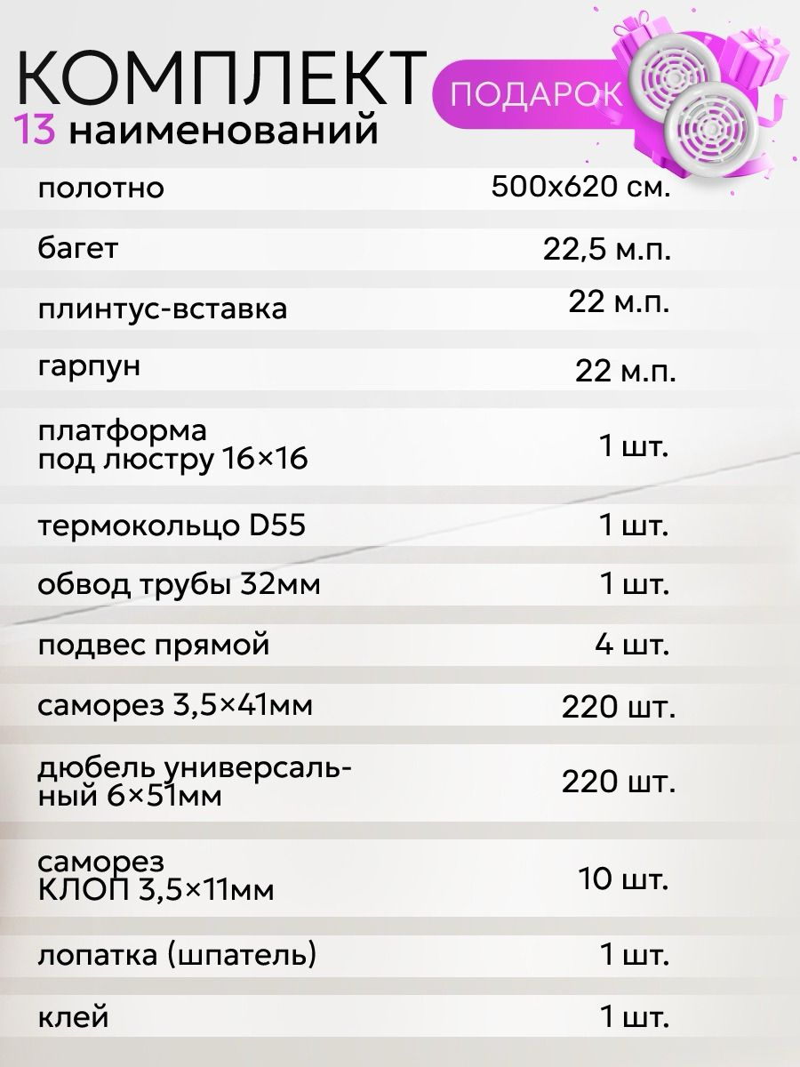 Комплект натяжного потолка матовый белый 480х600 см: сравнение цен, характеристики, фото, актуальное наличие и цены.