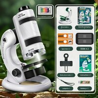 Учебный микроскоп - Белый (12 образцов + крепление для телефона + инструменты)