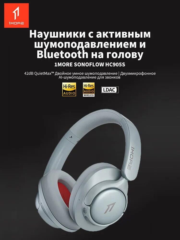 Наушники 1MORE HC905S, Bluetooth, активное шумоподавление, 90 ч работы, серебристый: сравнение цен, характеристики, фото, актуальное наличие и цены.