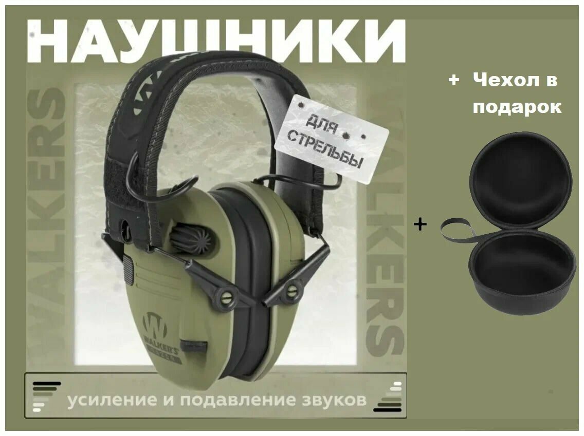 Наушники активные для стрельбы Walker’s Razor, тактические, цвет хаки +Чехол в подарок: сравнение цен, характеристики, фото, актуальное наличие и цены.