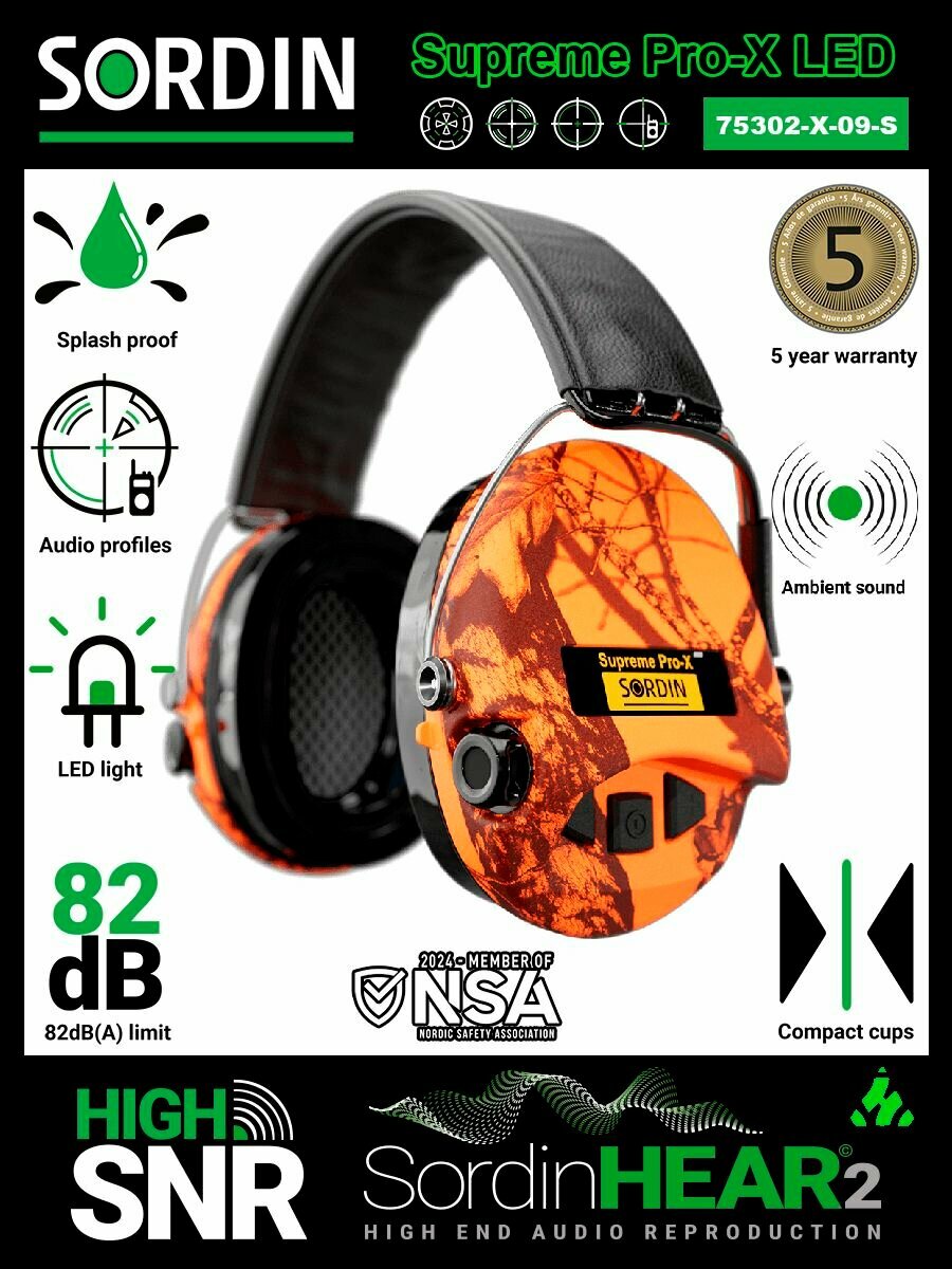 Наушники активные SORDIN Supreme Pro-X with LED Blaze, оранжевые/черная кожа: сравнение цен, характеристики, фото, актуальное наличие и цены.