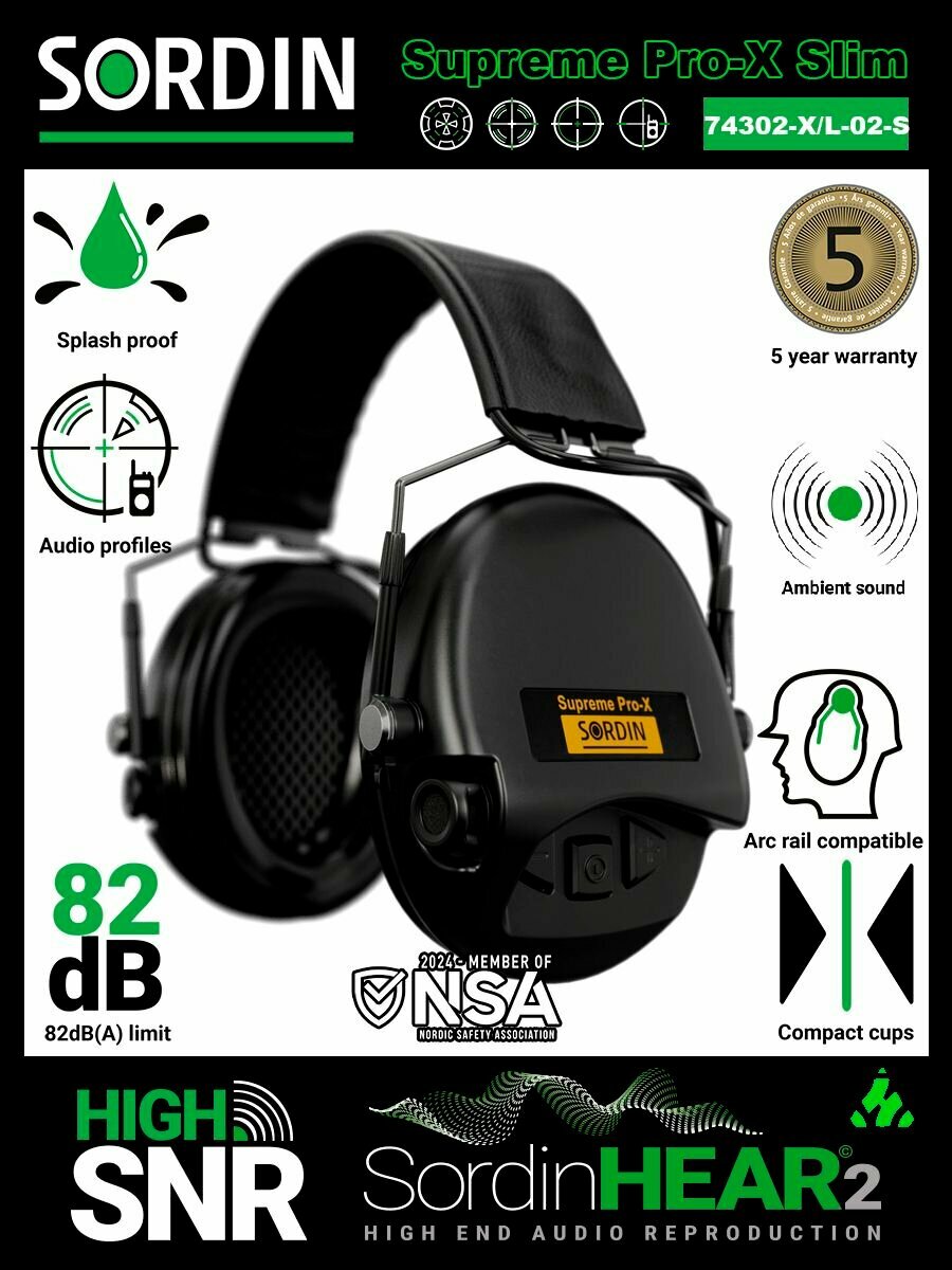 Активные наушники SORDIN Supreme Pro-X Slim для использования с шлемом - ключевые особенности: