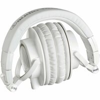 Полноразмерные закрытые наушники динамического типа Audio-Technica ATH-M50x способны воспроизводить частоты в диапазоне 15-28000 Гц, это гарантирует объёмный и чистый звук. Чувствительность устройства — 99 дБ/мВт, поэтому любимая музыка будет громкой. Наушники весят всего 285 г и имеют диаметр мембраны 45 мм. При помощи широкого мягкого оголовья они комфортно держатся на голове. В комплект входит три вида кабелей: витой и два прямых разной длины. Чтобы подключаться к аудиоустройствам различного типа, к стандартному разъёму мини-jack 3.5 мм приложен переходник 6.3 мм. Для удобства хранения наушники компактно складываются и легко помещаются в чехол, также входящий в комплект.