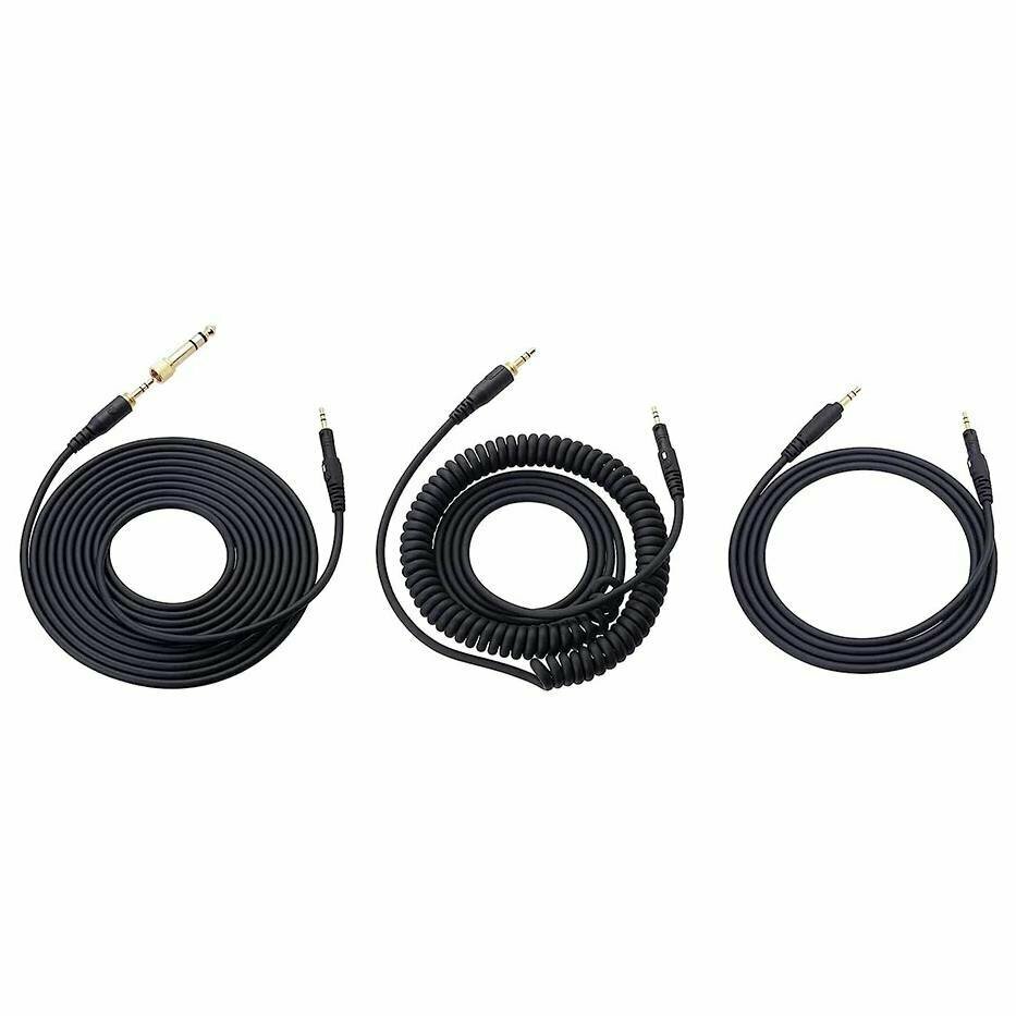 В комплекте с наушниками идут три кабеля jack 2.5 mm (M) - jack 3.5 mm (M), переходник jack 3.5 mm (F) - jack 6.3 mm (M) и чехол для хранения. Длина каждого кабеля составляет 3 метра, что позволяет комфортно использовать наушники на большом расстоянии от источника звука.
