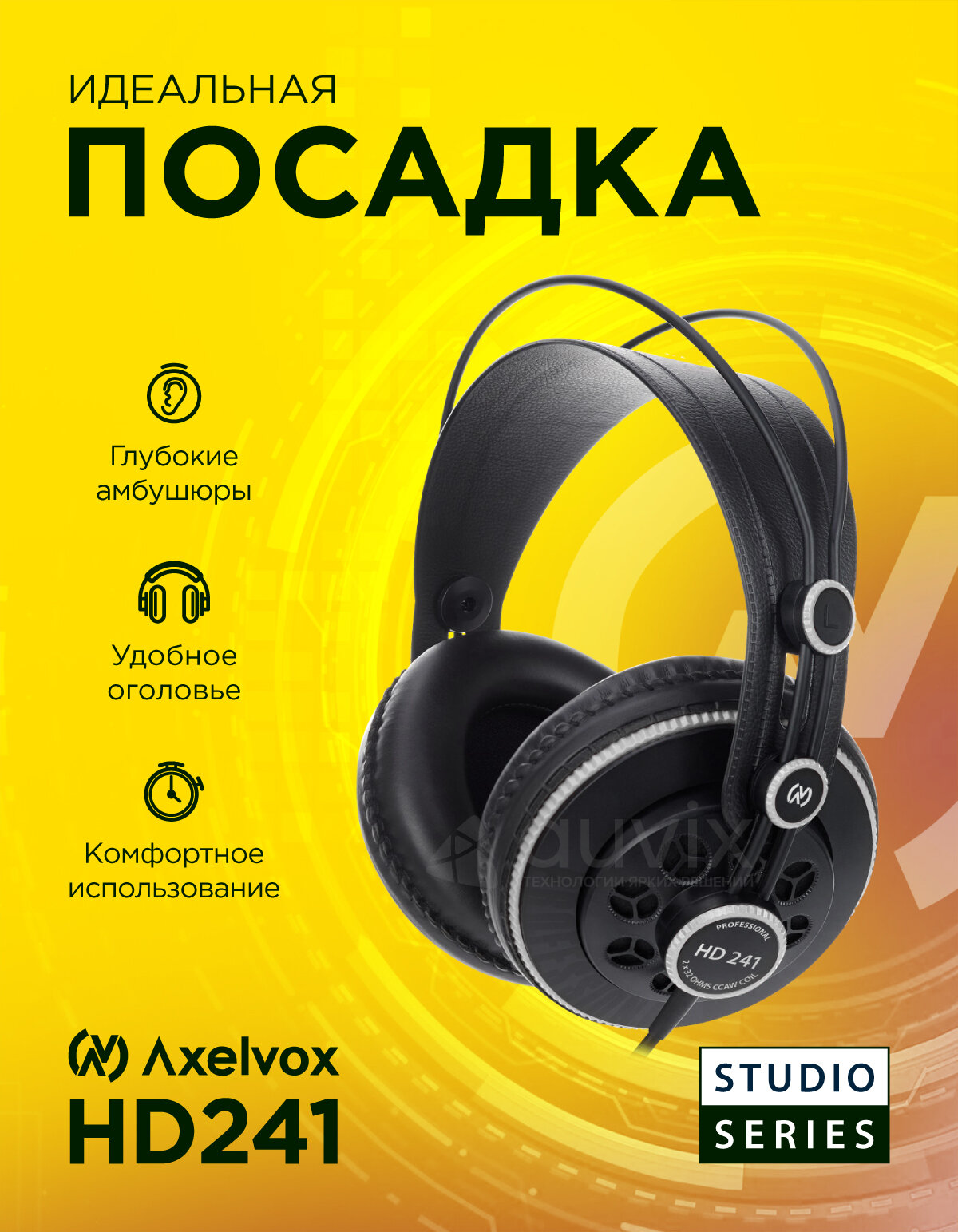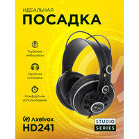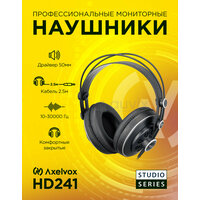 AXELVOX HD241 - студийные полуоткрытые динамические наушники заставляют вас почувствовать себя на сцене рядом с артистами, наслаждаясь глубоким, богатым звуком и превосходным балансом и ясностью. Эргономические амбушюры, объединенные с легкой и саморегулирующейся лентой, делают их очень удобными. Занимаетесь ли вы сведением, микшированием, или просто прослушиваете музыкальные композиции, наушники HD241 обеспечат комфорт и звуковую точность. Особенности модели: ▸ Драйверы с высоким разрешением ▸ Точно настроенный акустический канал ▸ Расширенный частотный и динамический диапазоны ▸ Саморегулирующаяся дужка ▸ Комфортные, плотно прилегающие чаши ▸ Прочный прорезиненный медный кабель, армированный капроновой нитью ▸ Мягкий чехол для переноски и хранения Характеристики ▸ Частотная характеристика: 10 - 30,000Гц ▸ Акустический дизайн: Полуоткрытые ▸ Драйвер: Неодимовый, диаметр 50мм ▸ Максимальный импеданс: 32Ом @ 1КГЦ ▸ Чувствительность: 98дБ SPL, 1mW ▸ Суммарный коэффициент гармонических искажений (КГИ) 0.25% на 1КГц/1V ▸ Максимальная мощность: 300mW ▸ Кабель: 2.5 м, прямой ▸ Разъем: позолоченый 3.5мм с адаптером 3.5мм - 6.3мм ▸ Давление оголовья: ~ 3.5N ▸ Вес: 276 г Обзоры и тесты «Axelvox HD241 - обзор доступных студийных наушников». HardwarePortal. ru (26.05.2010) «Студийные мониторы для всех. Обзор наушников Axelvox HD 241. Cyberstyle. ru (19.11.2010)