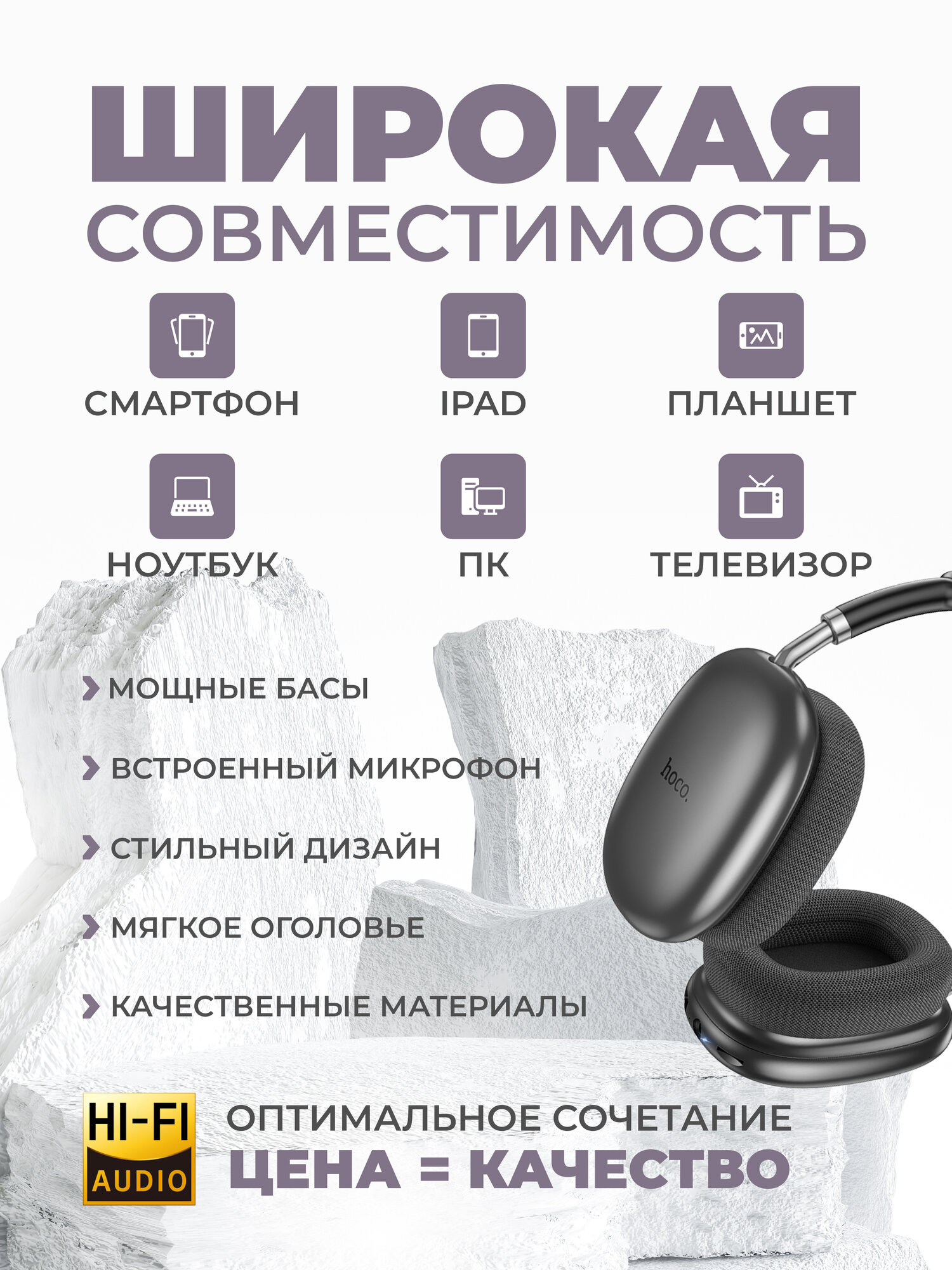 Наушники беспроводные большие с микрофоном Hoco W55 Air, полноразмерные накладные, черный: сравнение цен, характеристики, фото, актуальное наличие и цены.