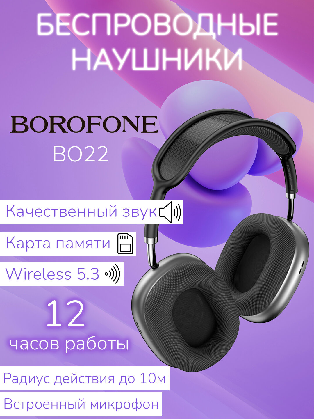 Купить Наушники беспроводные Borafone BO22 серый космос, большие, полноразмерные, с микрофоном, Micro-SD, Bluetooth 5.3, AUX кабель с доставкой по всей России. Наушники беспроводные Borafone BO22 серый космос, большие, полноразмерные, с микрофоном, Micro-SD, Bluetooth 5.3, AUX кабель: сравнение цен, характеристики, фото, актуальное наличие и цены.
