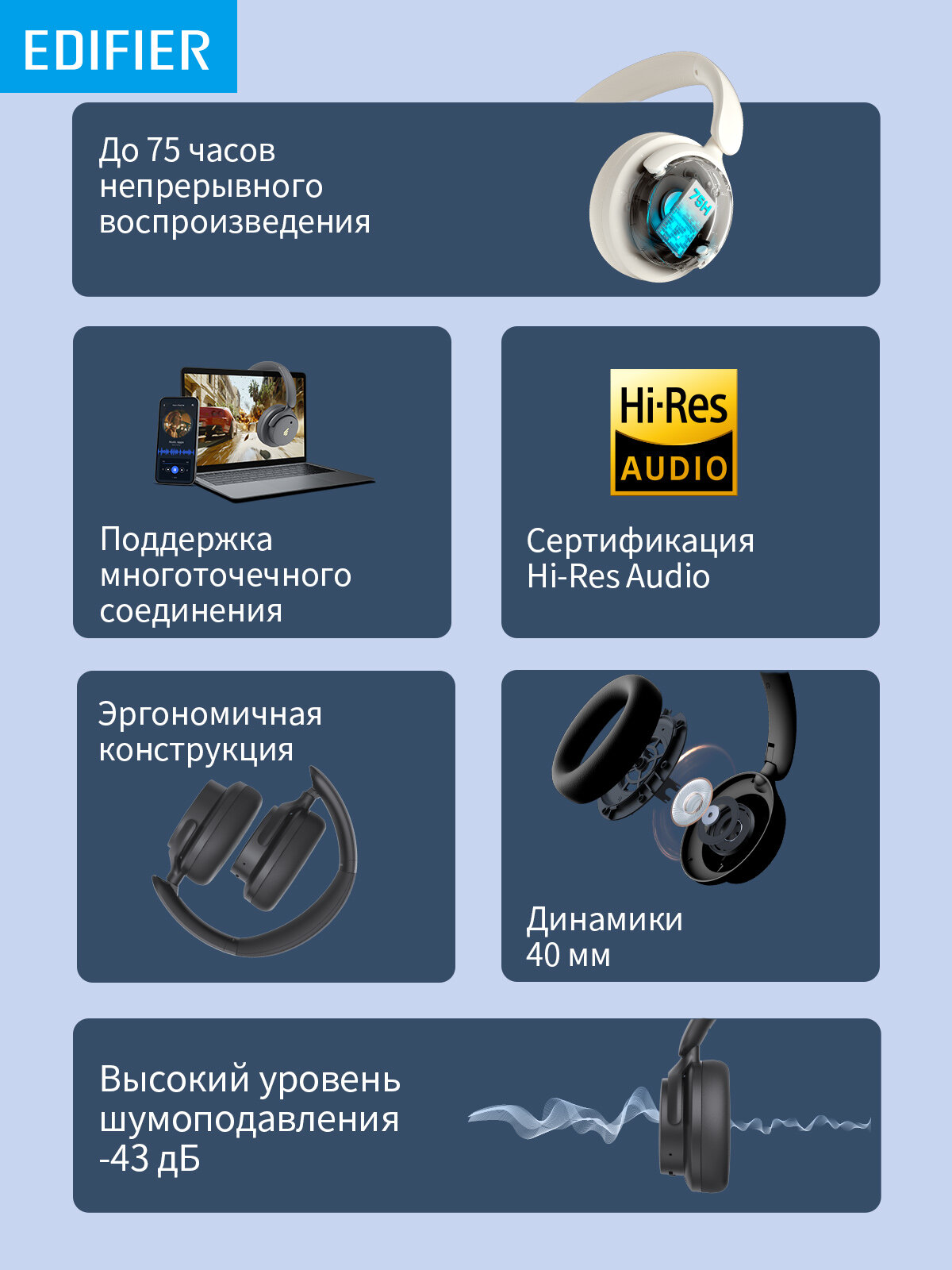 Беспроводные накладные наушники Edifier H9 с активным шумоподавлением