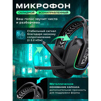 RGB подсветка, выдвижной микрофон, двойное оголовье, мягкие амбушюры, отсоединяемый кабель, прямой разъем, складная конструкция