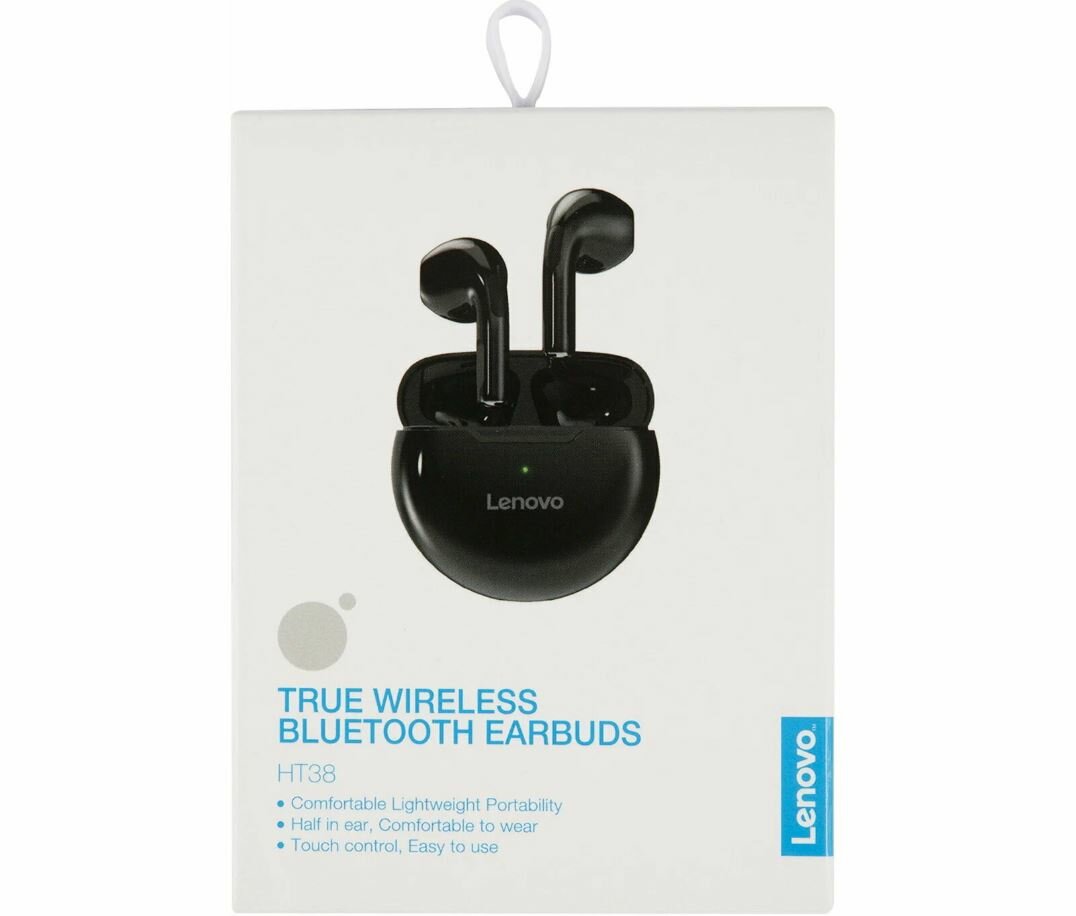 Наушники беспроводные Lenovo HT38, TWS, вкладыши, микрофон, BT 5.0, 250 мАч, черные: сравнение цен, характеристики, фото, актуальное наличие и цены.