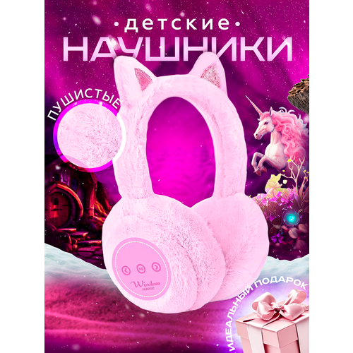 Купить Наушники беспроводные накладные детские пушистые с ушками Блютуз гарнитура для телефона, смартфона bluetooth розовые с доставкой по всей России.