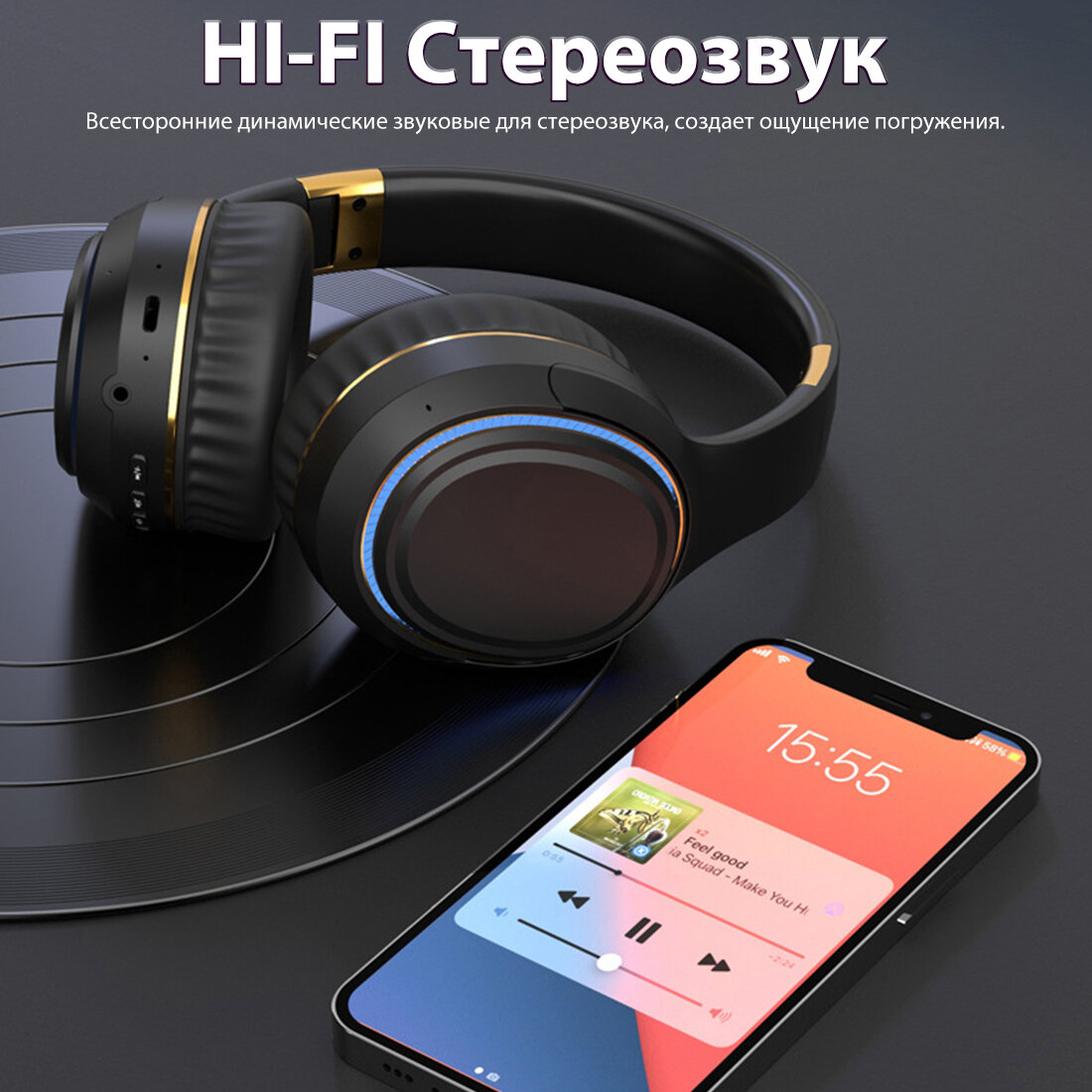 Купить Наушники беспроводные накладные с микрофоном, складные наушники, блютуз наушники с шумоподавление, для андроид и iOS с доставкой по всей России.