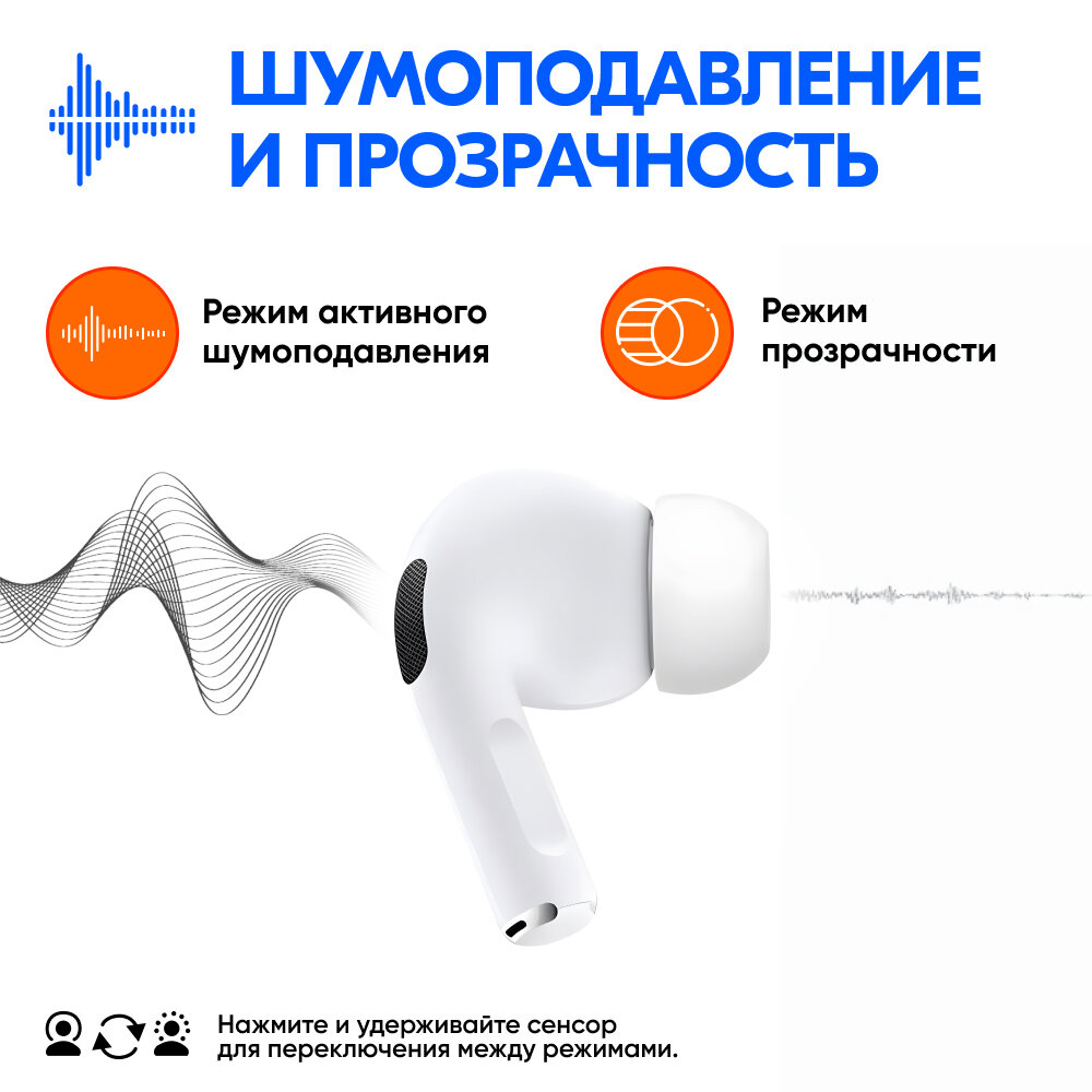 Данная модель отличается от беспроводных наушников Pods Pro 2 (артикул 2103313558252), в первую очередь, усовершенствованным чипом Airoha 1562A, позволяющим полноценно использовать оригинальные функции активного шумоподавления и прозрачности! Режимы шумоподавления и прозрачности активируются с помощью фирменных настроек на смартфонах iPhone и других устройствах Apple, а также на смартфонах и других устройствах Android с помощью удержания сенсора на наушниках.
