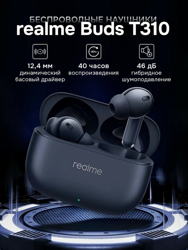 Купить Беспроводные TWS-наушники Realme Buds T310, Bluetooth 5.4, влагозащита, черный с доставкой по всей России. Беспроводные TWS-наушники Realme Buds T310, Bluetooth 5.4, влагозащита, черный: сравнение цен, характеристики, фото, актуальное наличие и цены.