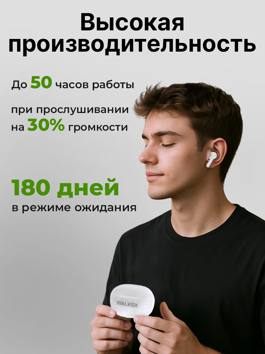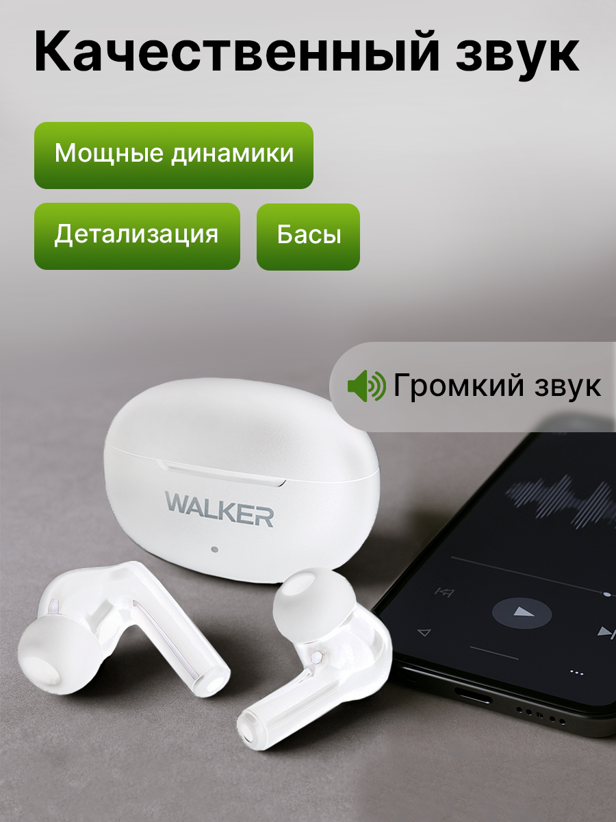 Наушники WALKER WTS-60 - это беспроводные TWS-наушники, которые обеспечивают высокое качество звука и комфорт при использовании. Они оснащены функцией шумоподавления, что позволяет наслаждаться музыкой в любых условиях.