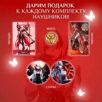 | Комплектация | Наушники; Значок с персонажем; Карточка (может попасться не из набора, со случайным персонажем); Аудиокабель Jack 3.5; Зарядный кабель Micro-USB; Коробка. |