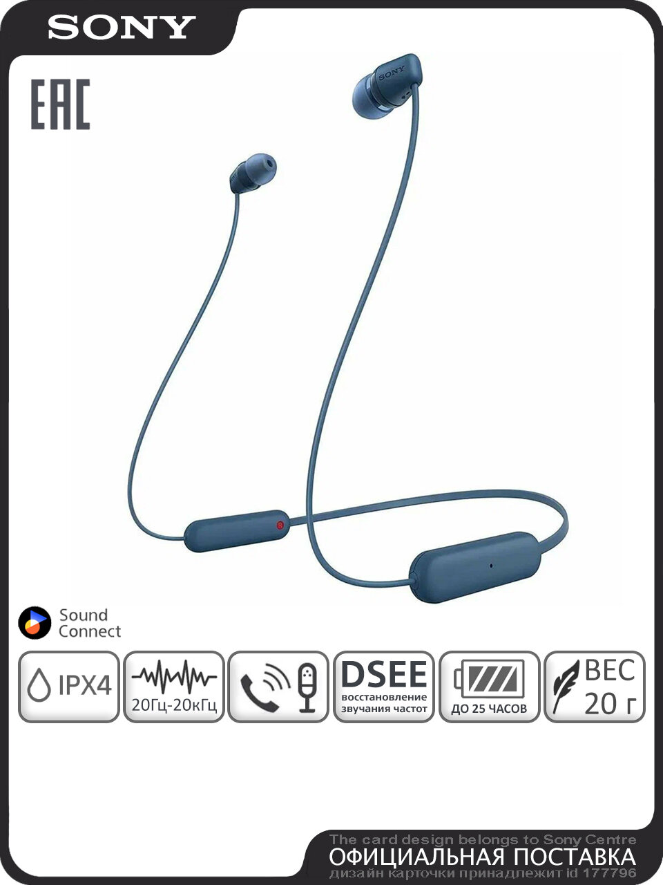 Купить Беспроводные наушники Sony WI-C100, Bluetooth 5.0, шейный обод, 25 часов, IPX4, DSEE, синие с доставкой по всей России. Беспроводные наушники Sony WI-C100, Bluetooth 5.0, шейный обод, 25 часов, IPX4, DSEE, синие: сравнение цен, характеристики, фото, актуальное наличие и цены.