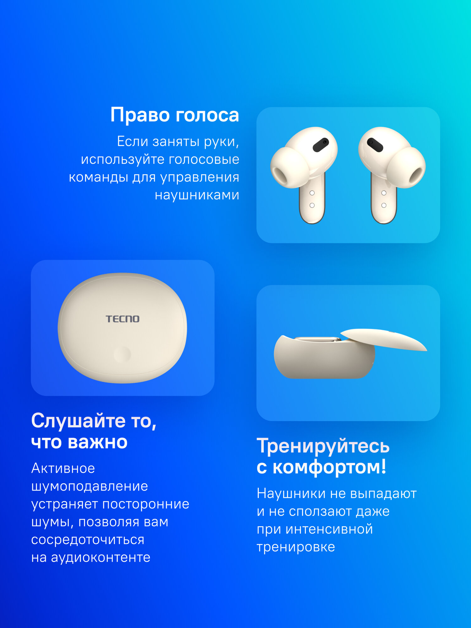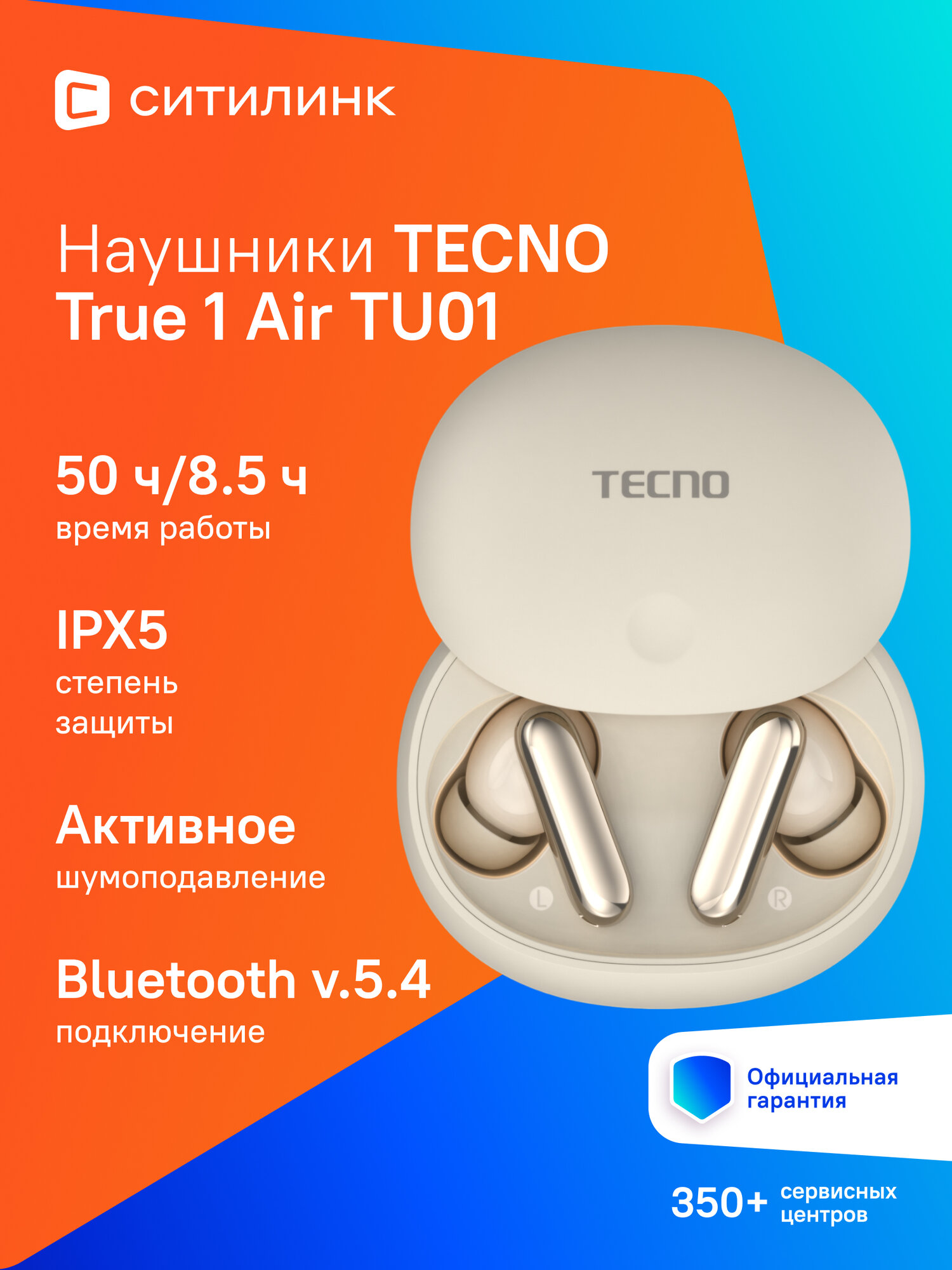 Купить Наушники беспроводные TECNO True 1 TU01 Air Creamy White (TU01 Air Creamy White) с доставкой по всей России.