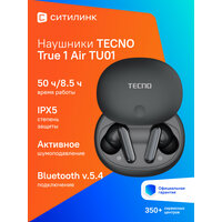 Купить Наушники TECNO True 1 Air TU01, Bluetooth, внутриканальные, черный [tu01 air elegant black] с доставкой по всей России.