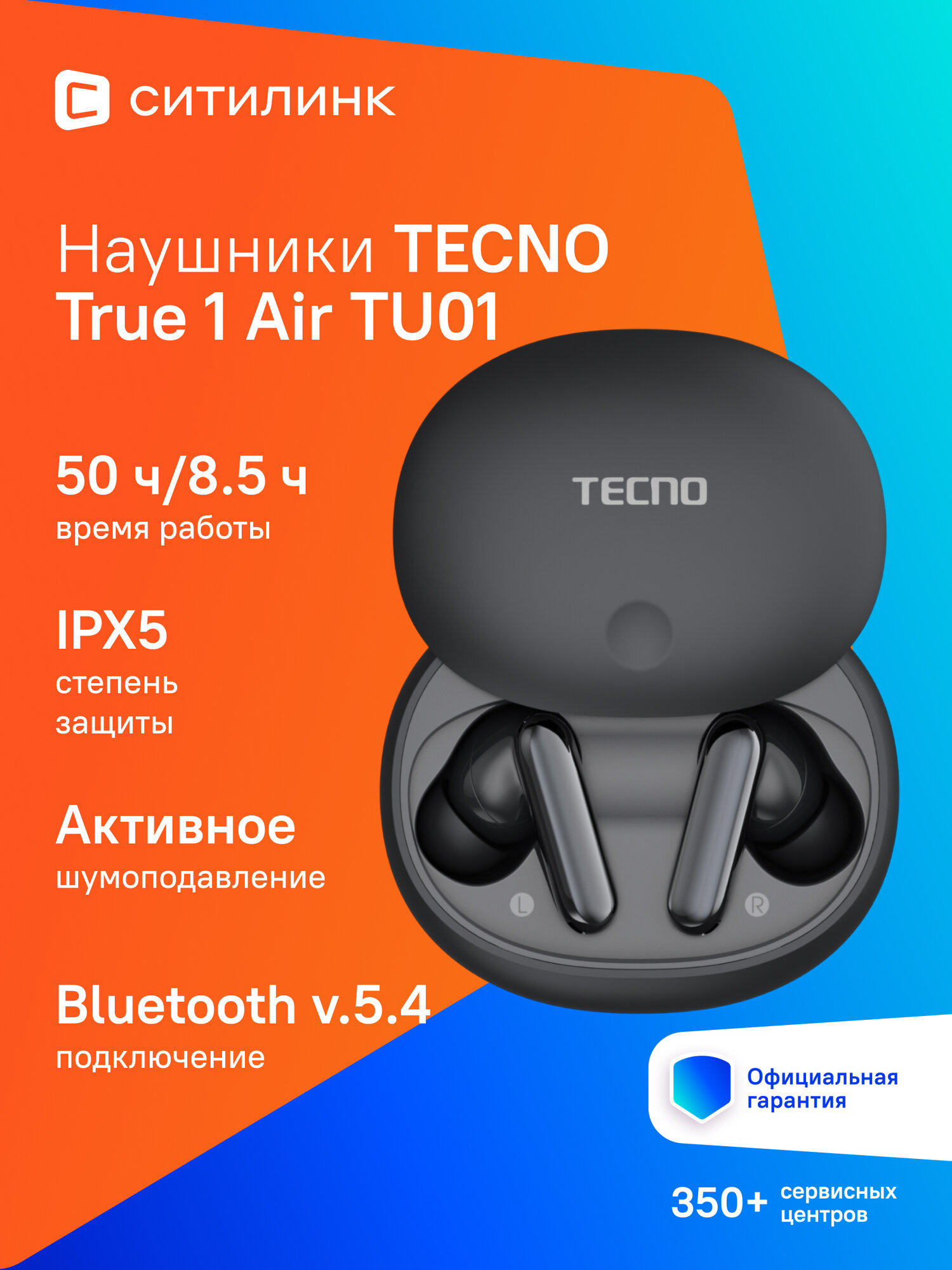 Наушники TECNO True 1 Air TU01, Bluetooth, внутриканальные, черный [tu01 air elegant black]: сравнение цен, характеристики, фото, актуальное наличие и цены.