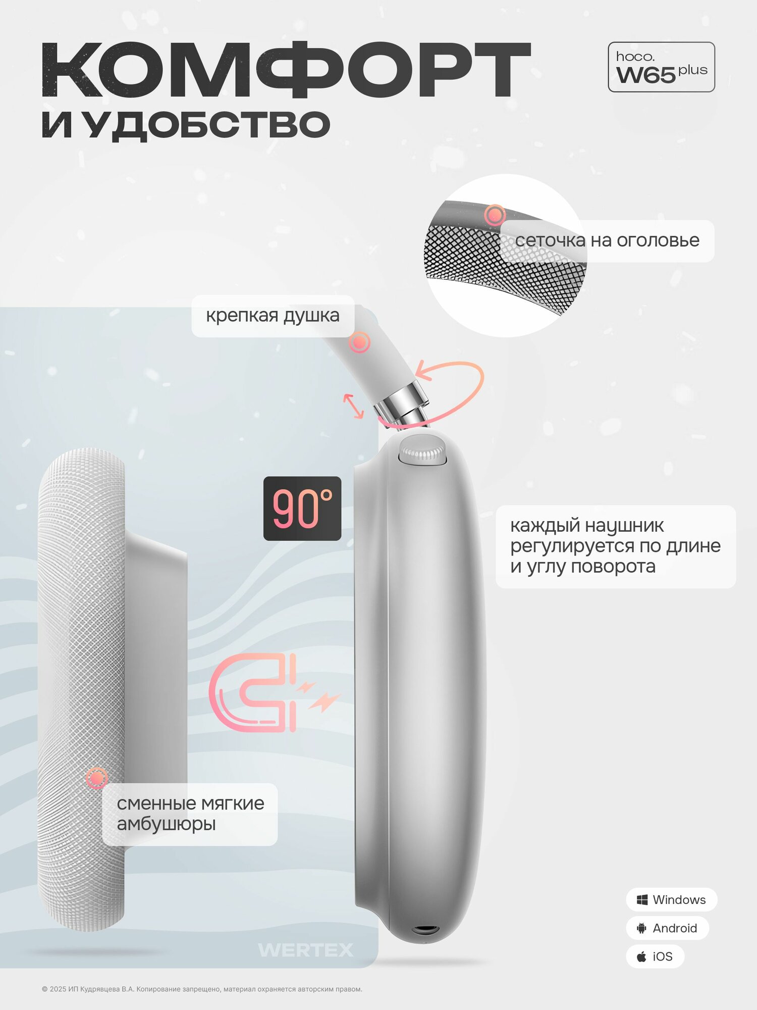 Наушники Hoco W65 Plus Happy ANC BT headphones совместимы с платформами Android, PC и iOS, что делает их отличным выбором для широкого круга пользователей.
