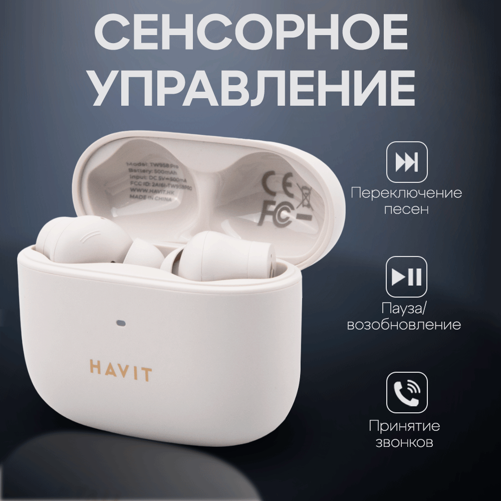 Наушники беспроводные TWS HAVIT TW958 PRO гарнитура с влагозащитой, микрофоном, с активным шумоподавлением, игровые, бежевые: сравнение цен, характеристики, фото, актуальное наличие и цены.