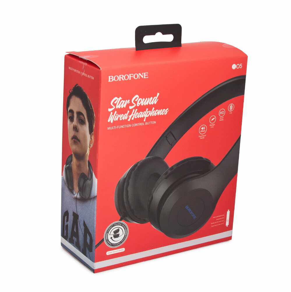 Наушники накладные BOROFONE BO5 Star sound 3.5 мм с удобной складной конструкцией идеальный подарок для любителей музыки. Беспроводные наушники с микрофоном гарантируют качественную передачу звука. Кабель длиной 1,2 метра обеспечивает комфортное использование в любых ситуациях. Размер динамиков 40 мм. Наушники для компьютера с микрофоном имеют однокнопочный пульт на проводе, прямую форму штекера. Эластичный кабель максимально гибкий и устойчивый к длительным деформациям без повреждений. Наушники Borofone B05 не пропускают внешние шумы и обеспечивают максимальную звукоизоляцию, что позволяет использовать их в шумных условиях, а также в тех случаях, когда - необходимо полностью сосредоточиться.