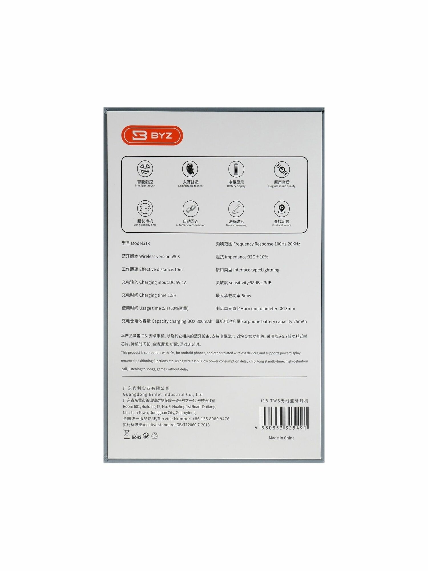 Наушники BYZ i18 Youth version, беспроводные, вкладыши, микрофон, ВТ 5.0, 300 мАч, белые: сравнение цен, характеристики, фото, актуальное наличие и цены.